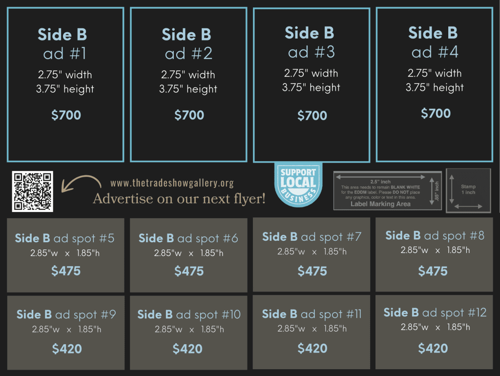 We’ve created a flyer design that pops! Unlike other local mailers and postcards that are small or have multiple pages to flip through, ours has only two sides to view so your ad space on our huge flyer will be hard to miss!